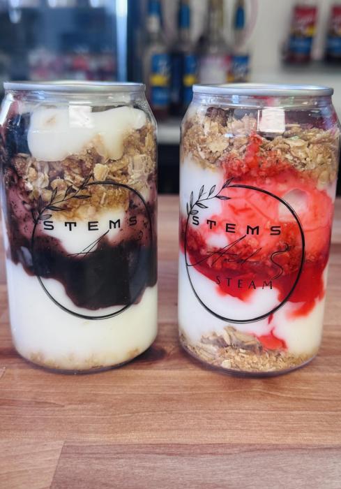 Stems and Steam! Cafe, coffee, bakery and flower shop all in one. Small business opened by two sisters following their dreams! Come on and order lunch and and get flowers for your special someone!